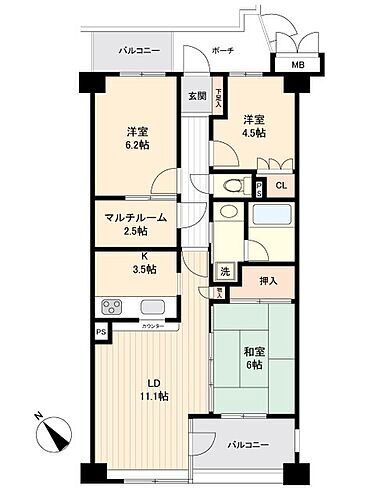 | 所在階/階数 | 4階/6階建 | バルコニー面積 | 8.86m2 |