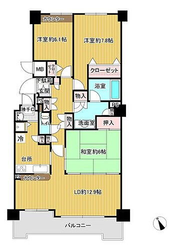 | 築年月(築年数) | 1997年6月(築28年6ヶ月) | 間取り | 3LDK (洋 6.1・7.8 和 6 LD 12.9) |
