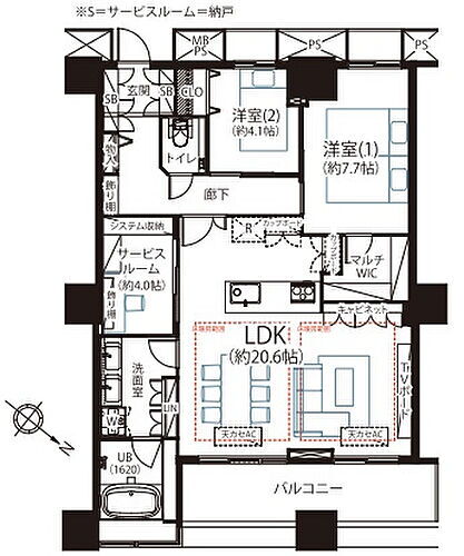 | 築年月(築年数) | 2008年1月(築17年10ヶ月) | 間取り | 2SLDK (LDK 20.6 洋 7.7・4.1) |