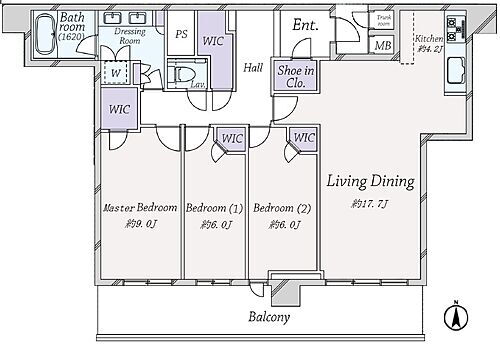 | 総戸数 | 1076戸 | 専有面積 | 106.05m2(壁芯) |