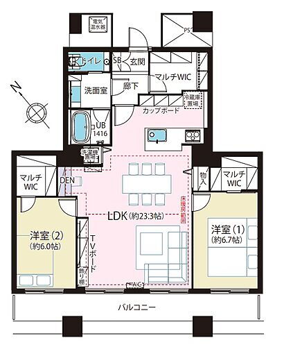 | 築年月(築年数) | 1998年2月(築27年9ヶ月) | 間取り | 2SLDK (LDK 23.3 洋 6.7・6) |
