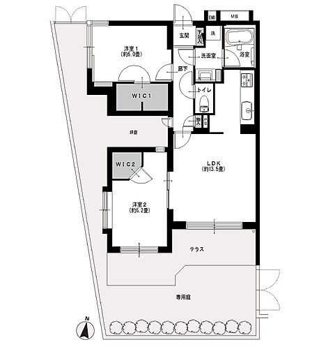 | 所在階/階数 | 1階/5階建 | バルコニー面積 | |