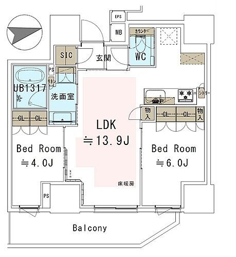 | 床暖房 | ○ | ウォークインクローゼット | - | 管理人常駐 | - |