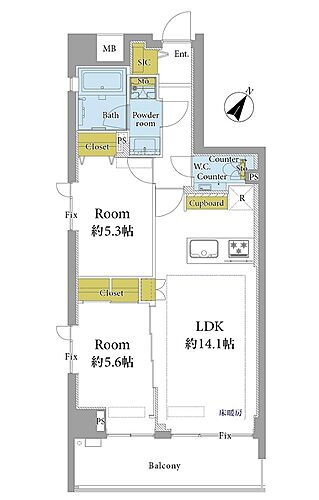 | 築年月(築年数) | 1998年9月(築27年4ヶ月) | 間取り | 2LDK (LDK 14.1 洋 5.6・5.3) |