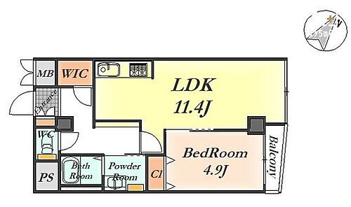| 所在階/階数 | 4階/7階建 | バルコニー面積 | 1.4m2 |