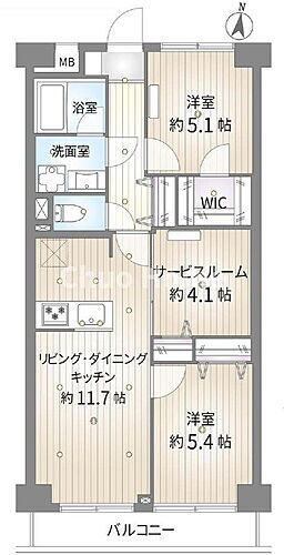 | 所在階/階数 | 3階/7階建 | バルコニー面積 | 5.4m2 |