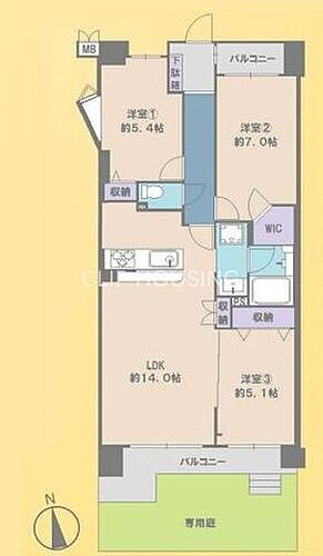 | 所在階/階数 | 1階/5階建 | バルコニー面積 | 17.74m2 |