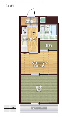 | 築年月(築年数) | 1981年7月(築44年4ヶ月) | 間取り | 1DK (和 6 D 4.5) |