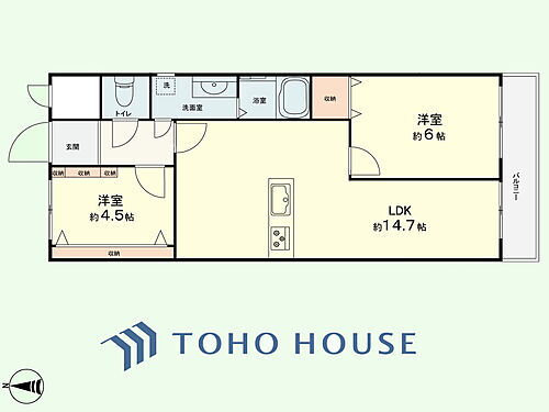 | 間取り | 2LDK | 専有面積 | 55m2(壁芯) |