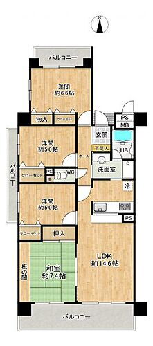 | 所在階/階数 | 4階/7階建 | バルコニー面積 | 18.42m2 |