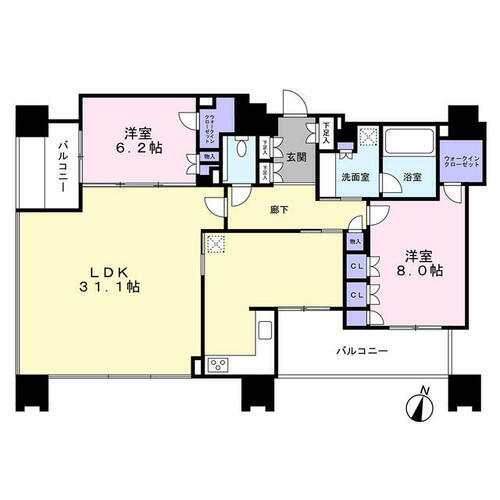 2LDK(洋 8・6.2 LDK 31.1) |