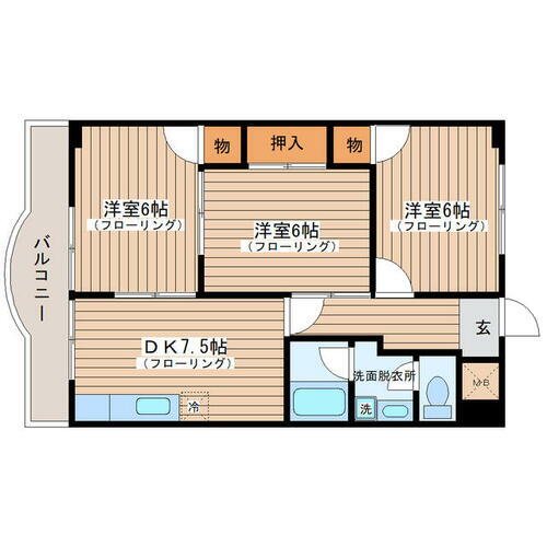 | 間取り | 3DK(洋 6・6・6 DK 7.5) | 築年月(築年数) | 1985年6月(築40年6ヶ月) |