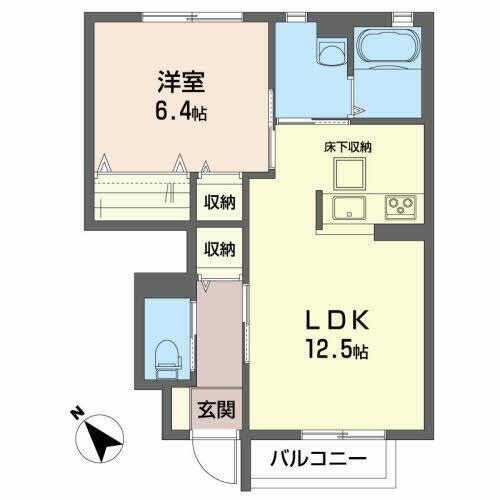 | 間取り | 1LDK(LDK12.5帖 洋室6.4帖) | 築年月(築年数) | 2010年2月(築15年11ヶ月) |