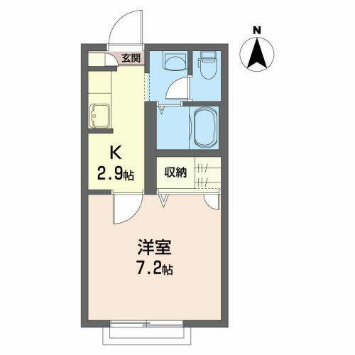| 間取り | 1K(K2.9帖 洋室7.2帖) | 築年月(築年数) | 2002年12月(築22年11ヶ月) |