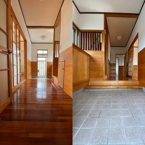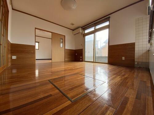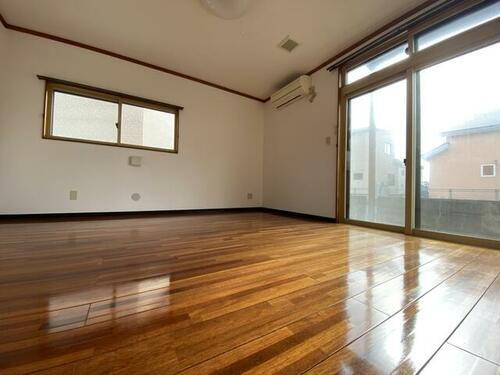 木の温もりを感じる3LDKの一軒家です。納戸もついているので、収納には困りません。また、全居室がフローリングのため、お手入れも簡単です。各室エアコンも需要が高いポイントでございます。こちらの物件には、ガレージがついております。1階は駐車スペースとして、2階は多目的物置としてご使用くださいませ。広めですが、駐車台数は車種によるものとなりますので、ぜひ現地でご確認をお願いいたします。周辺には、スーパーやコンビニ、ドラッグストア、100均などがあり、お買い物が便利な場所です。飲食店も近くにございます。ご内覧可能ですので、ご希望の際にはご連絡をお願いいたします。お待ちしております!