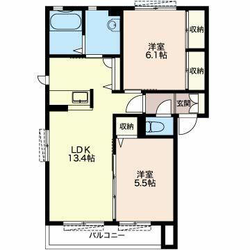 | 間取り | 2LDK(LDK13.4帖 洋室6.1帖 洋室5.5帖) | 築年月(築年数) | 2014年2月(築11年11ヶ月) |