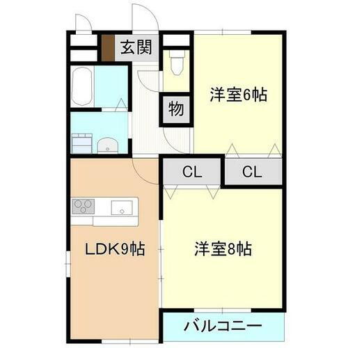 | 間取り | 2LDK(LDK9 洋8 洋6) | 築年月(築年数) | 2007年3月(築18年10ヶ月) |