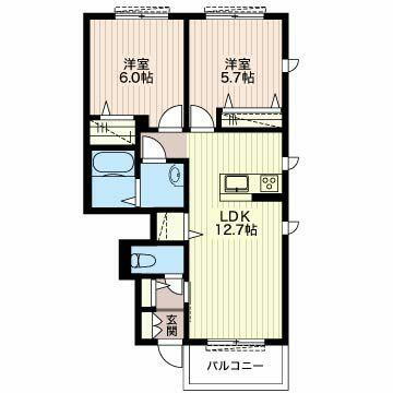 | 間取り | 2LDK(LDK12.7帖 洋室5.7帖 洋室6.0帖) | 築年月(築年数) | 2015年1月(築10年12ヶ月) |
