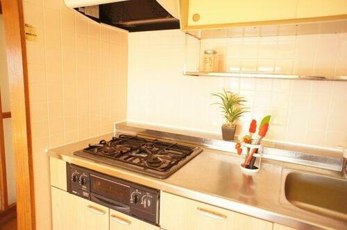 | 設備 | 冷房・エアコン・バルコニー・バス・トイレ別・トイレ・収納スペース・洗濯機置場・室内洗濯機置き場・シャワー・追焚機能・プロパンガス・洗面台・フローリング・ガスコンロ可・シャンプードレッサ・出窓・システムキッチン・モニタ付インターホン・駐輪場・3口以上コンロ | ||||