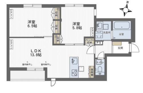 | 間取り | 2LDK(洋 6.5・5.8 LDK 13.8) | 築年月(築年数) | 2025年10月 新築 |