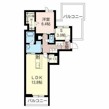 | 間取り | 1SLDK(LDK13.8帖 洋室6.4帖 S3.0帖) | 築年月(築年数) | 2019年3月(築6年10ヶ月) |