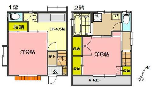 | 備考 | ◆ 水道料金3,000円/月◆ リフォーム予定。(クロス、床貼替。洗面台交換予定)・賃貸保証等:加入要(初回保証料(賃料等65%))・戸建て感覚メゾネットアパート。単身者から少人数の家族向け。収納充実。2路線、2駅利用できます。バス停すぐそば。・所属階:1~2階 | ||||