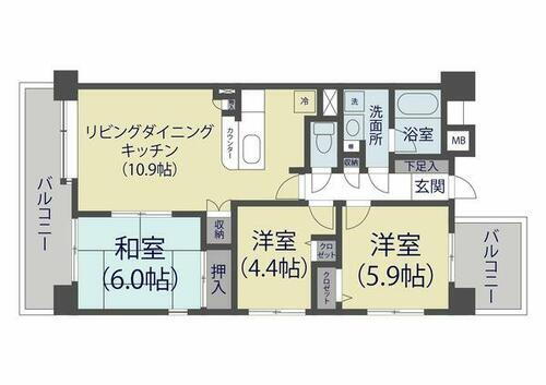 | 間取り | 2SLDK(LD10.9 和室6 S4.4 洋室5.9) | 築年月(築年数) | 1997年3月(築28年10ヶ月) |