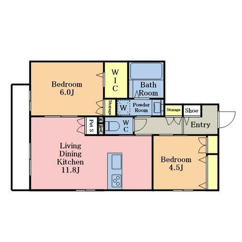 2LDK(洋 6・4.5 LDK 11.8) |