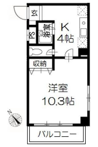 | 間取り | 1K(K4・洋室10.3) | 築年月(築年数) | 1999年4月(築26年7ヶ月) |