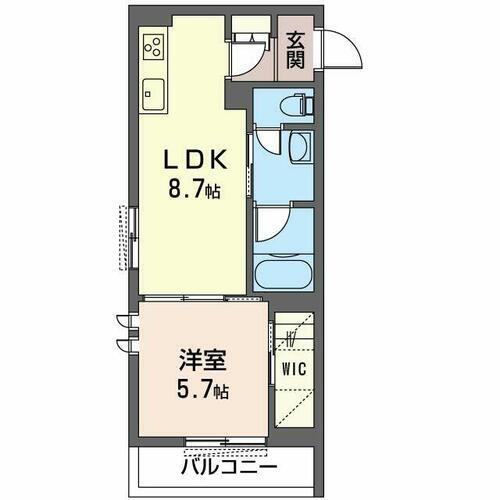 | 間取り | 1LDK(LDK8.7帖 洋室5.7帖) | 築年月(築年数) | 2023年1月(築2年12ヶ月) |