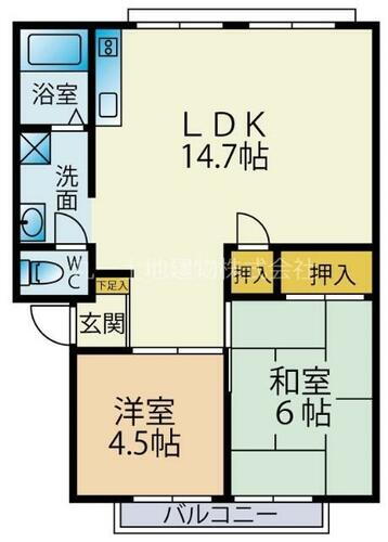| 間取り | 2LDK(和室6畳/洋室4.5畳/LDK14.7畳) | 築年月(築年数) | 1991年3月(築34年10ヶ月) |