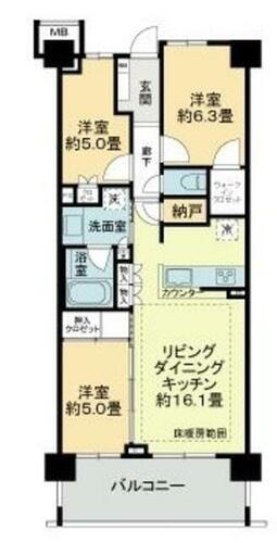 | 間取り | 3LDK(LDK16.1洋室6.3洋室5洋室5) | 築年月(築年数) | 2018年9月(築7年3ヶ月) |