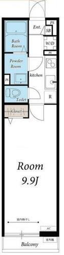 | 間取り | 1K(K2.3洋室9.9) | 築年月(築年数) | 2017年5月(築8年8ヶ月) |