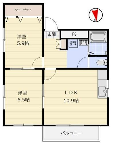 | 間取り | 2LDK(洋 6.5・5.9 LDK 10.9) | 築年月(築年数) | 2006年3月(築19年9ヶ月) |