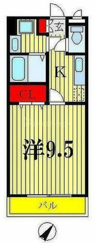 1K(洋室9.5帖 K3.5帖) |