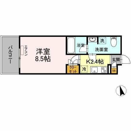 | 間取り | 1K(洋8.5、K2.4) | 築年月(築年数) | 2023年4月(築2年8ヶ月) |