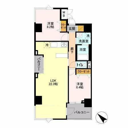 | 間取り | 2LDK(LDK22.3、洋8.2、洋6.4) | 築年月(築年数) | 2012年12月(築12年11ヶ月) |