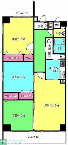 | 間取り | 3LDK(LDK16.0帖 洋室7.8帖 洋室6.3帖 和室6.6帖) | 築年月(築年数) | 2005年2月(築20年11ヶ月) |