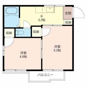 2K(K3.2帖 洋室4.6帖 洋室5.2帖) |