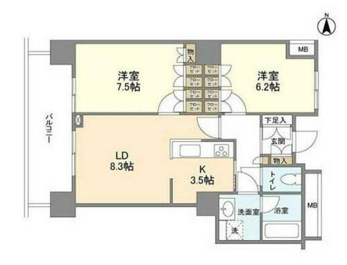 2LDK(洋室7.5畳/洋室6.2畳/LDK11.8畳) |