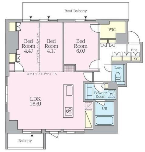 3LDK(洋室4.4洋室4.1洋室6) |