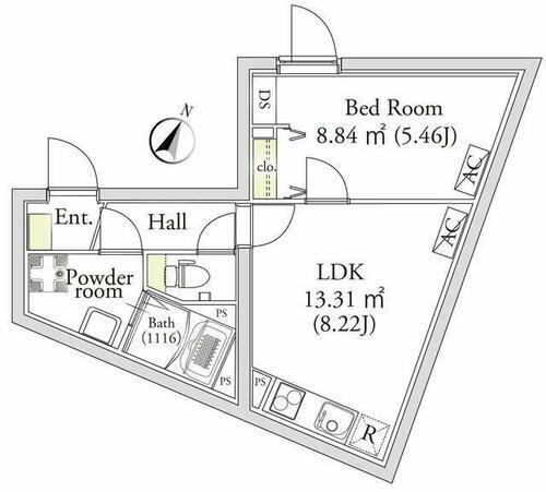 1LDK(LDK8.22洋室5.46) |
