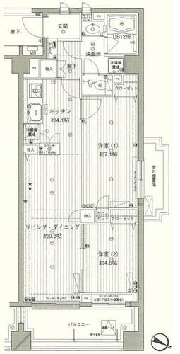 間取り 2LDK 専有面積 57.78m2