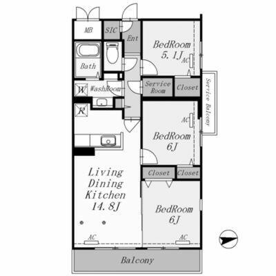 3LDK(洋 5.1/洋 6.0/洋 6.0/ LDK14.8/) |