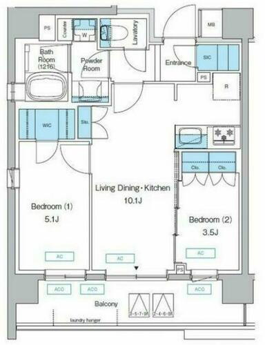 間取り 2LDK 専有面積 46.02m2
