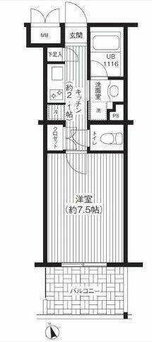 | 間取り | 1K(洋7.5、K2.1) | 築年月(築年数) | 2000年12月(築25年1ヶ月) |