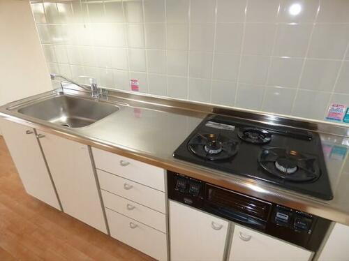 | 設備 | 冷房・暖房・エアコン・給湯・バルコニー・バス・トイレ別・トイレ・収納スペース・洗濯機置場・室内洗濯機置き場・シャワー・CATV・BS端子・都市ガス・洗面台・フローリング・ガスコンロ可・システムキッチン・駐輪場・クローゼット・CS・ディンプルキー・洗面所独立・バイク置き場・シューズボックス・光ファイバー(ブロードバンド)・インターネット対応・3口以上コンロ・CATVインターネット |