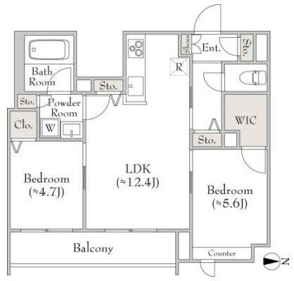 2LDK(洋室5.6畳/洋室4.7畳/LDK12.4畳) |