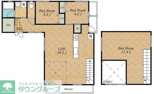 2SLDK(LDK18.1帖 S11.4帖 洋室4.2帖 洋室4.2帖) |