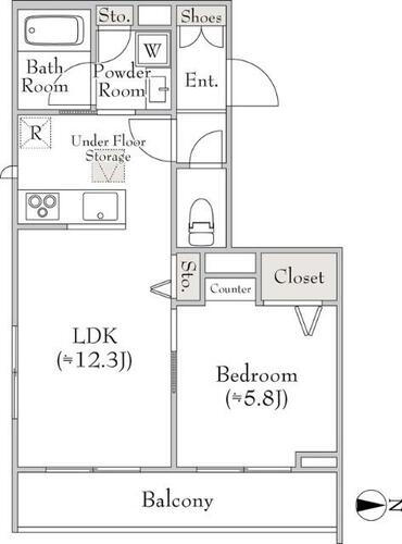 1LDK(洋室5.8畳/LDK12.3畳) |